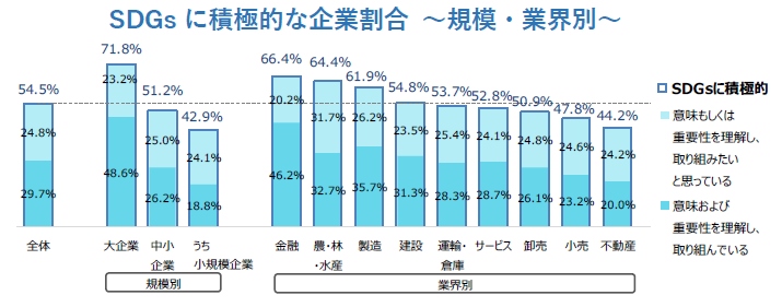 企業規模別にみると、「大企業」ではSDGsに積極的な企業が71.8%と、全体を大幅に上回りました。