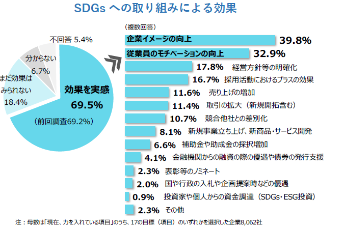 企業の7割がSDGsの効果を実感、「企業イメージの向上」「従業員のモチベーションの向上」が上位