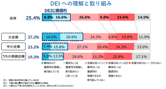 4社に1社がDEI(多様性、公平性、包摂性)への取り組みに積極的