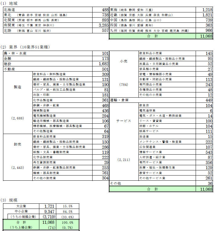1.調査対象(2万7,159社、有効回答企業1万1,068 社、回答率40.8%)